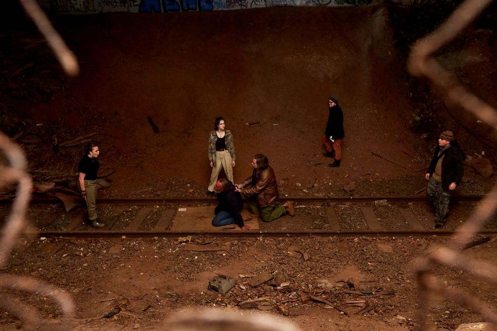 The more extended sketches included Underground Arts, a scene devised by Bangalow Theatre’s director, Anoushka Gammon, which imagines a dystopian future, and was played under the old railway bridge. 10 years down the track, the government has still not lifted restrictions, and the disastrous results of philistine decisions about supporting the arts, such as the federal government has made recently, come home to roost. Today’s homeless have been replaced by the most creative and imaginative people in the population, who are now completely ostracised from society. Too short for a plot, but too long not to have one, this sketch nonetheless made a telling effect with its abundance of references.