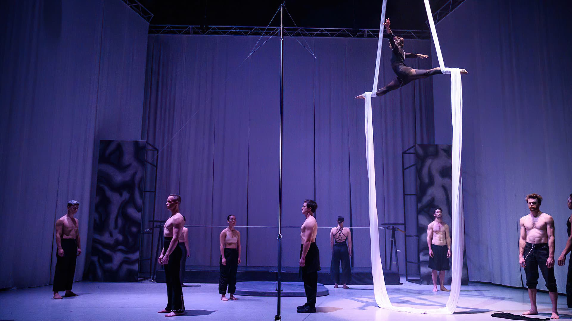 While there are not star players, as such, everyone’s unique contributions play important roles within the abstract narrative. Excitingly, the performers execute both the athletic and emotive sides of the physical movements, both on floor and in lifts and larger ensembles, like trained dancers, rather than acrobats fumbling through transitional steps.