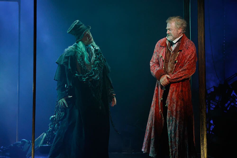 The supporting characters of Belle (Sarah Morrison) and Little Fan (Aisha Aidara) bring a lightness to the stage under all Scrooge’s gruffness, and the ensemble are both atmospheric and utterly charming. Everything about this production is carefully thought out – I particularly enjoyed Scrooge’s costuming, his ragged coat indicating that for all his wealth, he could never enjoy it.