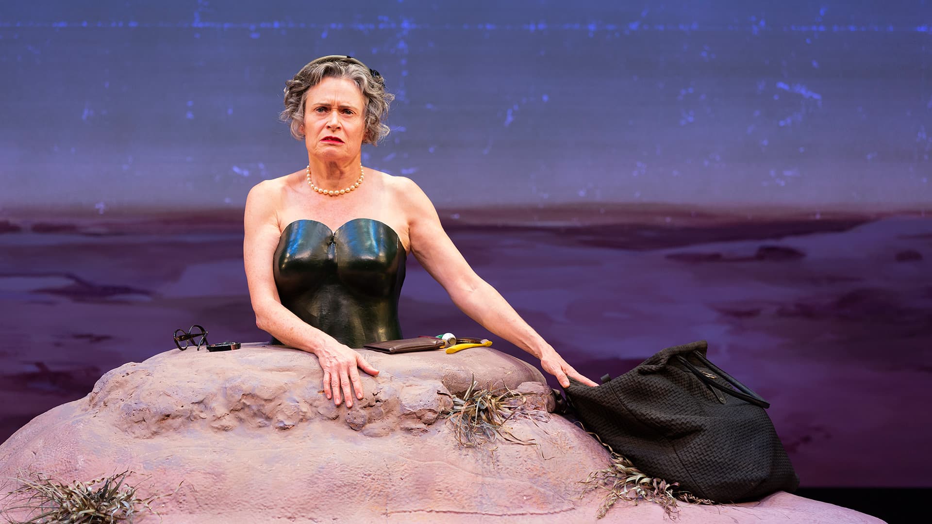 Dialogue is never throwaway and every word fights for its place on the page. With a non-linear text as complex as ‘Happy Days’, an actors internal thought process needs to be cast iron for an audience to stand a chance of sharing the journey. Lucy’s impeccable timing and trademark delivery genuinely serves us in making sense of a script that is laden with ambiguity, deliberate pausing and very precise stage direction. Like a painter with access to a single brush, the physical limitations prescribed for Winnie significantly reduces the tools available for an actor to play her. In act one the restraints are brutal, in act two, they’re severing. Performing in such extraordinary circumstance is an enormous ask and undertaking. Judith Lucy began her career as an actor but it’s been a while. Ironically it’s the imposed limitations of the role that also highlight some of the limitations of the performer, however, once again, it is Lucy’s unique and innate vocal dexterity that gets her across the line.