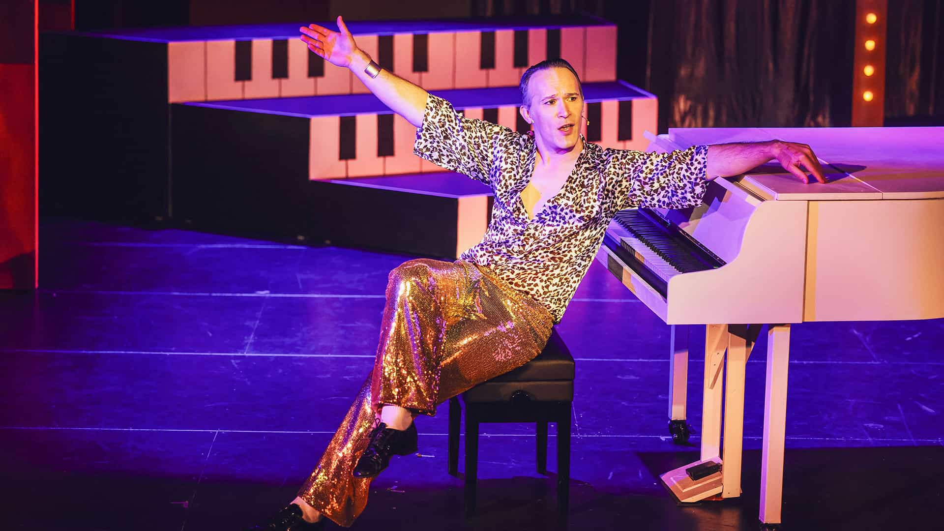 The legacy he has left was clear in the passion of audience members at Theatrical’s opening night. People were dressed up in colourful and sequined outfits, singing along during numbers and even dabbing their eyes in the sadder moments. I saw the couple next to me reach out and grasp each other’s hands a couple of times – maybe reminiscent of some past happy memories they’ve shared with Allen’s music.