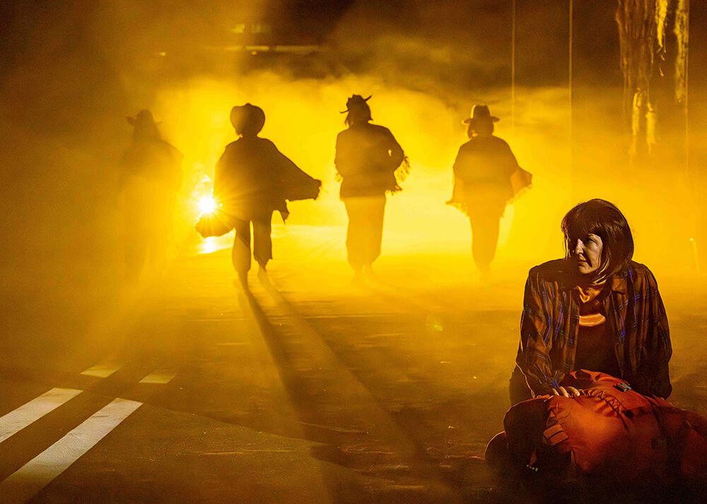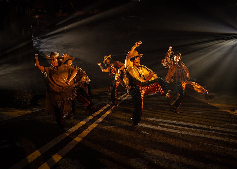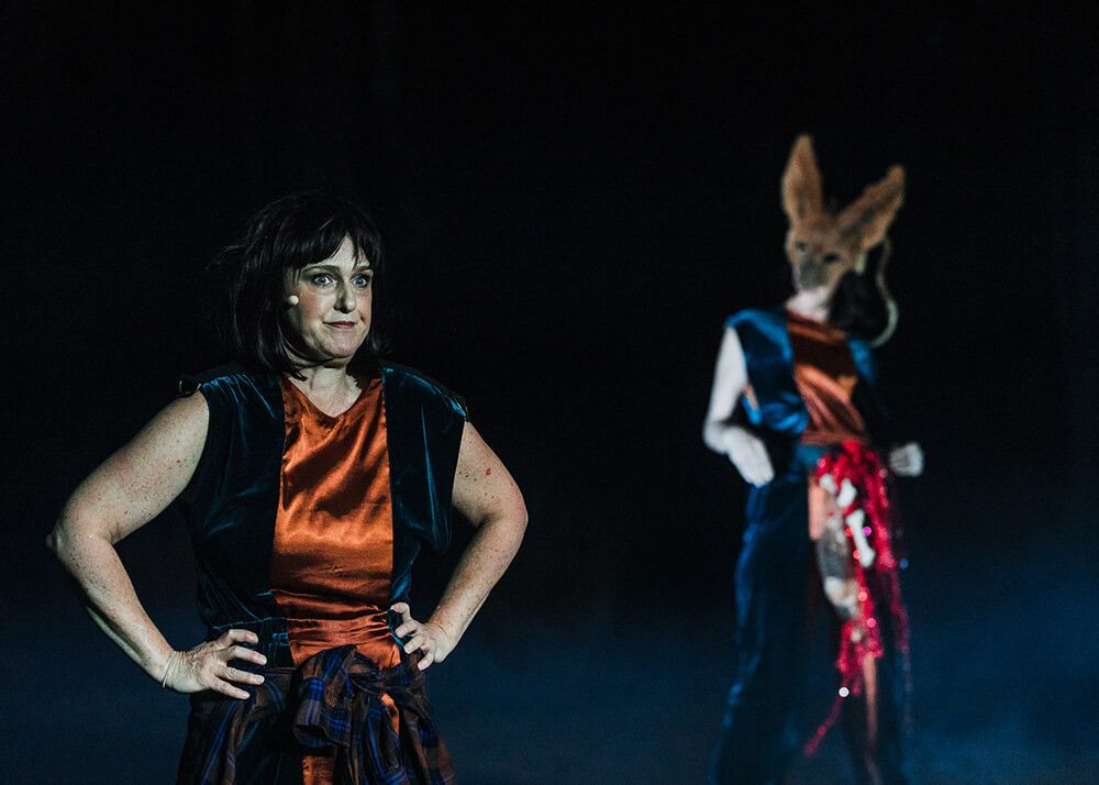 The props (you cannot call them props – these are little miracles, many on wheels) and the animals, the skins and the costumes – what a team of creatives. The mind boggles and the show moves on. Music, lighting, more fog, more characters we all know, see and hear in our daily Ozzie lives – more mystery, more situations, oh so familiar if you live in the country!