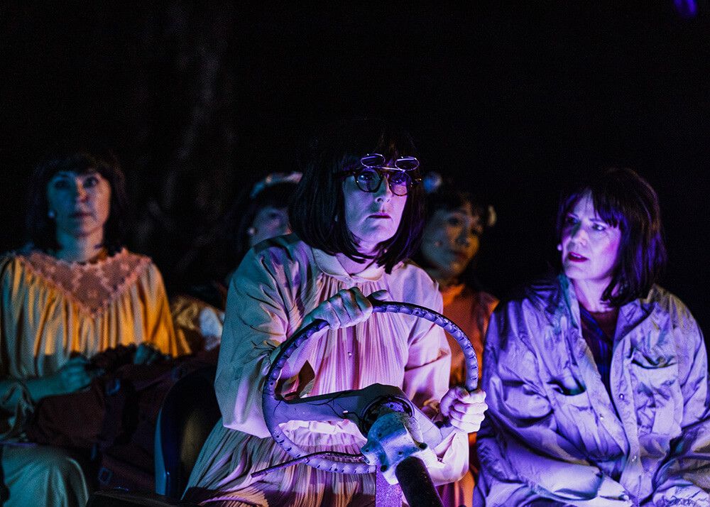 Eva (in her many forms) embarks on a solo journey with us in tow. The music, lighting and warehouse set up is magical, mystical and ever-unfolding. How do they do it? We are on the road with Eva, sharing her fears, her frustration, her anger, her road-less-travelled and all of the characters she encounters on the Road to Nowhere (thanks Talking Heads, never more apt). We gasp when she gasps; we cringe when she cringes; we mentally applaud (not during the show, no, we must hang on every word, every nuance and embrace the magic, time for applauding later). Oh my. Ockerism at it's finest and the humour is palpable. Audience is fully connected now and what more can you want from live theatre? And this is LIVE theatre. They breathe, we breathe: they stop, we stop. Please don't stop!