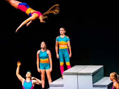 Girls with Altitude is an apt name for this joyous, feminist circus show featuring girls 12-18 years old from the Flying Fruit Fly Circus.
